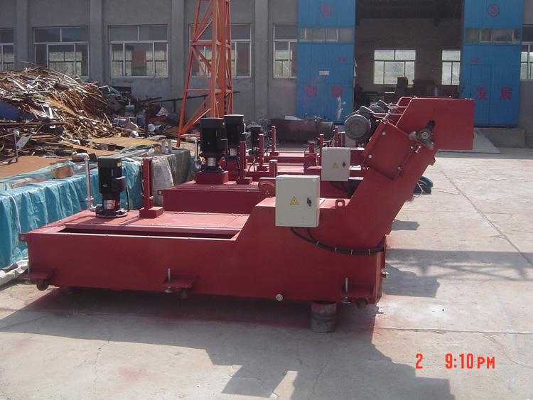 本裝置是利用刮板把大的雜質(zhì)刮出,過濾網(wǎng)過濾乳化液的原理,達(dá)到輸送鐵屑、過濾乳化液的目的。反沖刮板排屑器適用于密度較小的碎屑、過濾精度要求較高的場所。 反沖刮板排屑器在特殊的場所還可以在底板下部增加磁鐵,做成磁性反沖刮板排屑器,增加磁鐵是為了讓雜質(zhì)能更快更多的沉淀,以便能更完全的排出。 反沖刮板排屑器廣泛應(yīng)用在加工鋁屑或材質(zhì)較輕的機(jī)床。反沖刮板排屑器也可和紙帶過濾機(jī)組合使用,用于過濾精度更高的精密機(jī)床。 反沖刮板排屑器選型說明: 反沖刮板排屑器一般是根據(jù)客戶需要的尺寸進(jìn)行定做的,排屑器型號是根據(jù)寬度B定的,型號為XYFGP-B。客戶需要選用反沖刮板排屑器時(shí),只需提供現(xiàn)場的長度L或L1其中的一個(gè),水平高度尺寸H1,抬頭高度H,寬度尺寸B1或B,角度α一般為60°,特殊情況可選30%%D或45%%D。